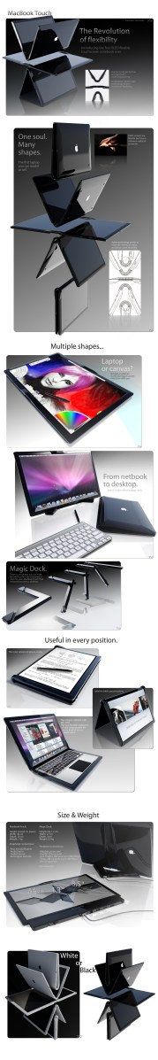 I love Apple laptops, but why does this have to be for Apple? Apple is probably too proud (and too invested in their new tablet products) to take this idea, or you. So, why not call this beautiful creation the “Tommaso” and start your own empire of amazing products? Just for fun, you should replace the apple logo with a cool “Tommaso” logo. 🙂